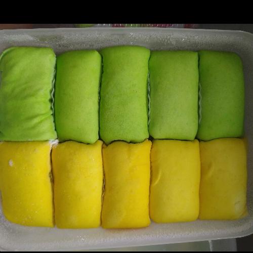 Pancake durian isi 10 jumbo dengan daging asli sidikalang dan krim tipis.